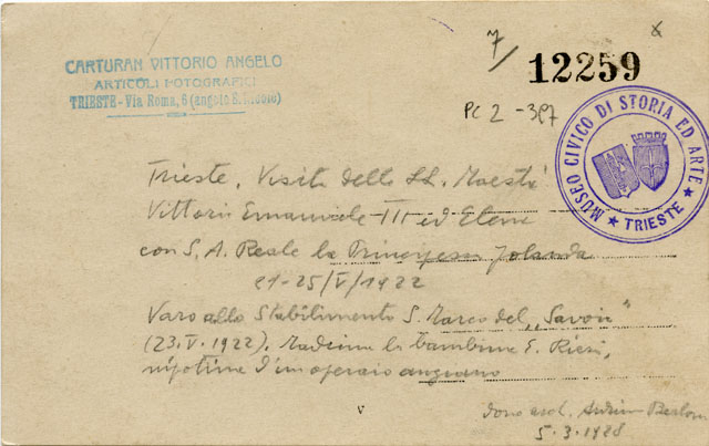 Vittorio Emanuele III la regina Elena e la principessa Iolanda al cantiere San Marco di Monfalcone durante il varo del piroscafo Conte Savoia.