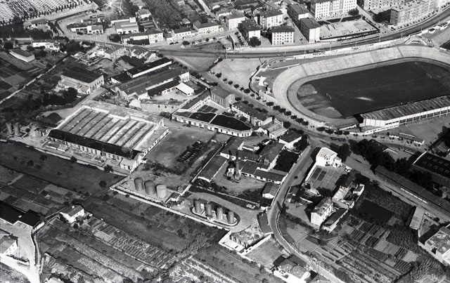 Immagini aeree della "Prima Raffineria Triestina di Grassi" della famiglia Pontini, poi I.R.C.O., (raffineria olii minerali), quindi VINCOR, piccola raffineria che riciclava olio usato