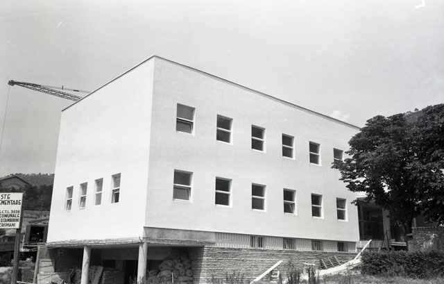 Vedute della scuola media, poi intitolata a Mario Codermatz, ancora in costruzione.