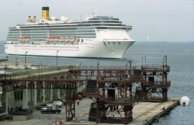 Stazione marittima, nave crociera, Costa Atlantica, rive di Trieste, notturni, pescheria, foto artistiche, turisti, Canterna.