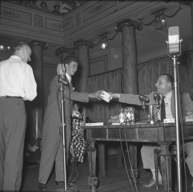 Dalla sala del Ridotto del teatro Verdi va in onda Botta e risposta, il programma radiofonico a quiz condotto da Silvio Gigli, con grande partecipazione di pubblico.