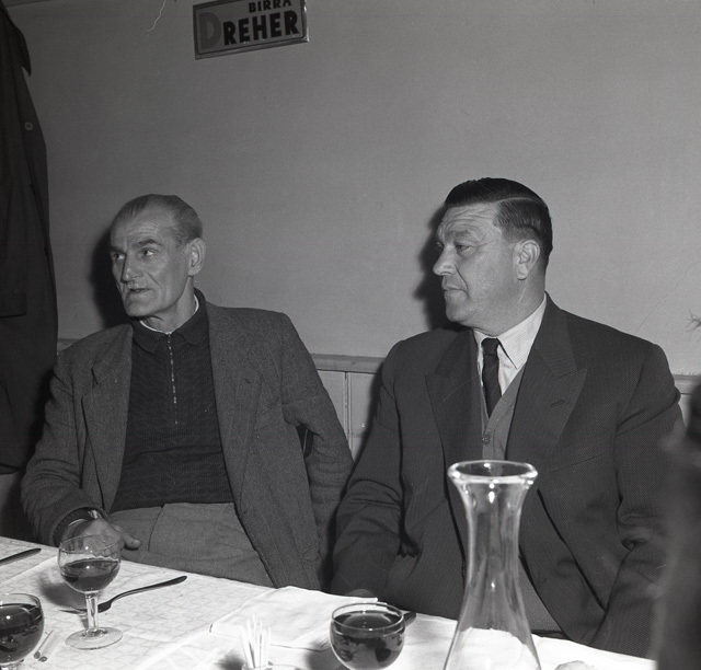 Felice Mezzari, consigliere nazionale della Federazione pubblici esercizi, a tavola con un gruppo di esercenti triestini presso la trattoria Pepi Granzo