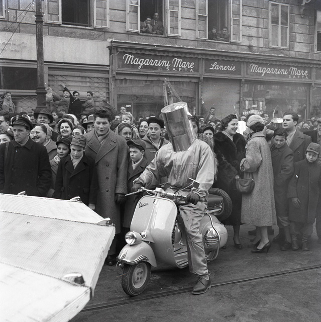 Da qualche anno ormai la Vespa ha motorizzato (sia pur su due sole ruote) gli italiani: a Trieste il Vespa Club festeggia , anche se in ritardo, la Befana con un'imponente sfilata di scooter. Apre il rumoroso corteo un disco volante (così allora venivano chiamati gli UFO) pilotato da un vespista.