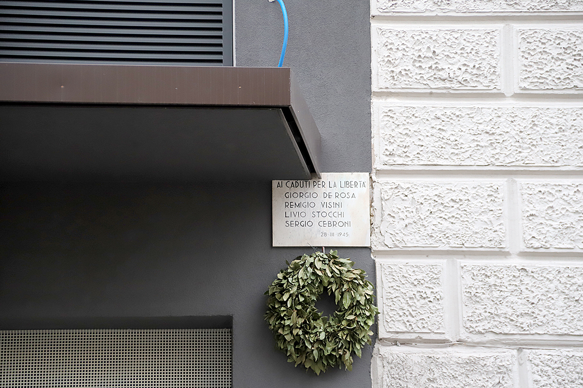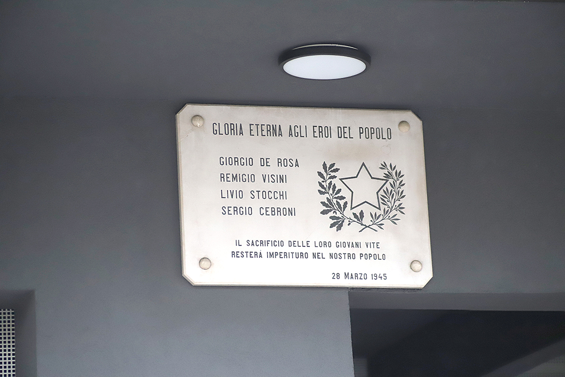 All'esterno dell'edificio di via Massimo D'Azeglio 13, allora requisito dai nazisti, vennero impiccati i partigiani dei GAP Giorgio De Rosa, Sergio Cebroni, Livio Stocchi e Remigio Visini,dopo un’azione partigiana svoltasi il 27 marzo 1944.
