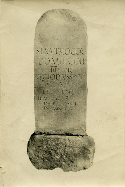 Lapide rinvenuta a Trieste nel 1909 tra via Pondares e via Sant'Apollinare. La stele reca l'iscrizione funeraria del pretoriano Sextus Vibius Cordus, che recita: Sex(to) Vibio Côr=/ do, mil(iti) coh(ortis)/ III pr(aetoriae),/ Q(uintus) Clodius Sesti=/ us v(ivus) f(ecit) / lib(ertis) lib(ertabus)q(ue)./ H(oc) m(onumentum) h(eredem) n(on) s(equetur)./ In fr(onte) p(edes) XII,/ in ag(ro) p(edes) L./ L'epitafio, all'epoca della scoperta, fu trovato fissato mediante un perno di ferro al blocco di pietra originario. All'interno del recinto sepolcrale, oltre alla stele, vi era anche l'urna contenente le ceneri del defunto. La sepoltura si data al terzo quarto del I sec. d.C. La lapide è attualmente conservata presso l'Orto Lapidario del Museo di Storia ed Arte di Trieste.