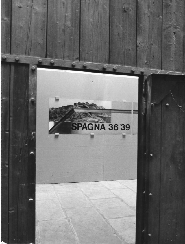 Serie di positivi della presentazione e allestimento "Spagna 1936 -39". La mostra presentata alla biennale di Venezia è stata poi trasferita alla Risiera di San Sabba, fonte: IL PICCOLO 1977/06/14 allegato al cartiglio dattiloscritto con titoli dei positivi.