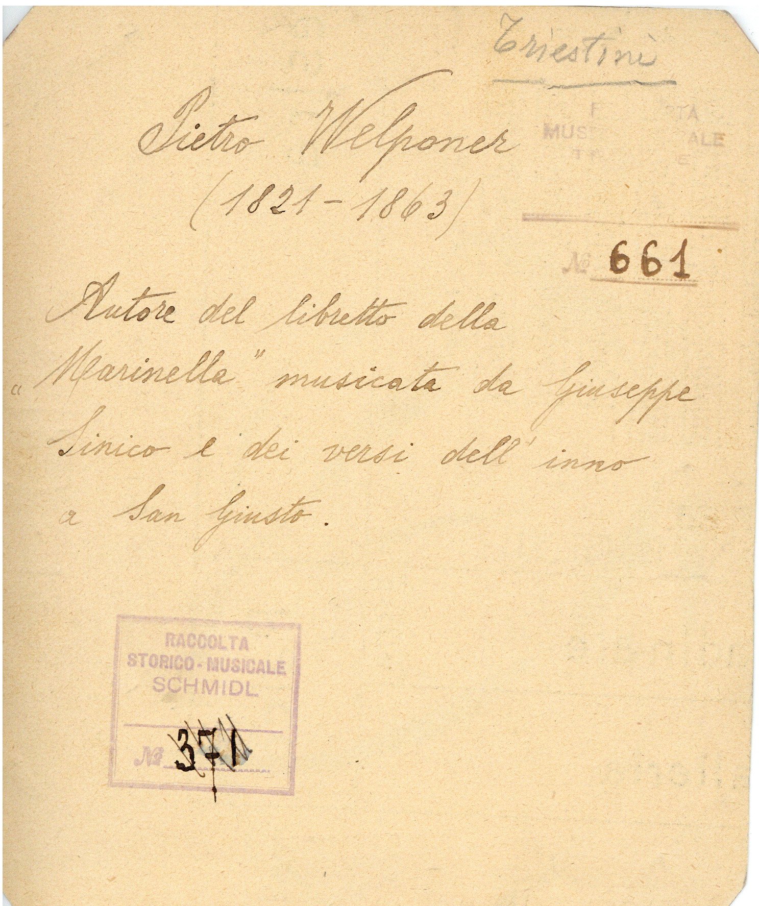 Proprietà Ente pubblico territoriale; Civici musei di Storia ed Arte; donazione; Coronidi, Leopoldo; 1937