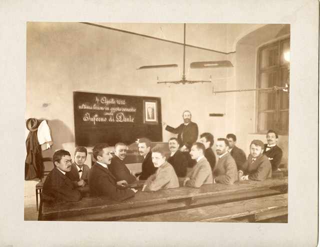 Gruppo di allievi con Filippo Zamboni: ultima lezione in questo semestre sull'Inferno di Dante: Vienna 4 aprile 1892
