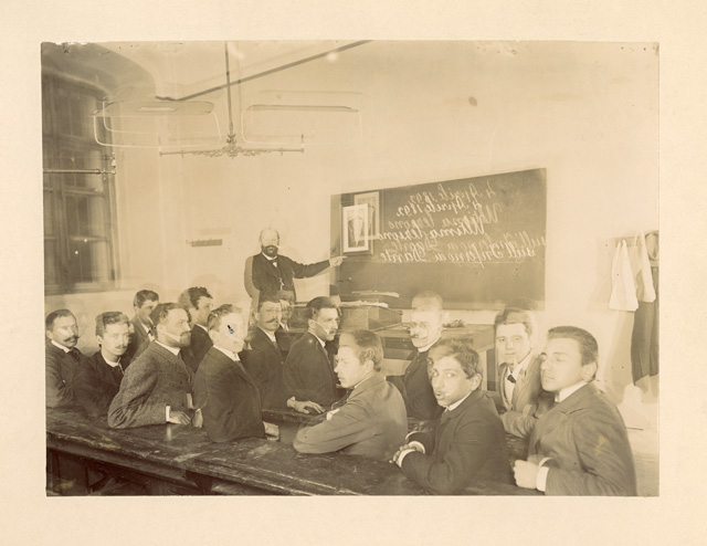 Gruppo di allievi con Filippo Zamboni: ultima lezione in questo semestre sull'Inferno di Dante: Vienna 4 aprile 1892