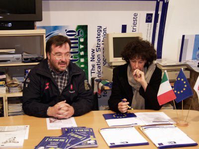 L'assessore Fulvio Sluga e la dottoressa Maila Zarattini nella sede dell'Infopoint Europa presentano l'iniziativa