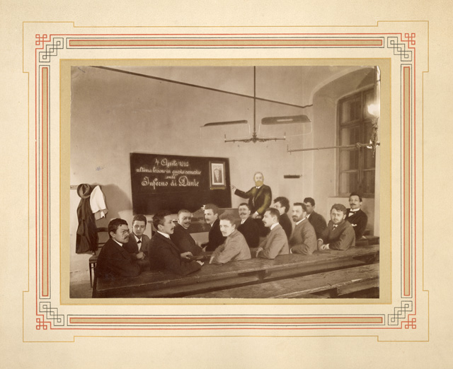 Gruppo di allievi con Filippo Zamboni: ultima lezione in questo semestre sull'Inferno di Dante: Vienna 4 aprile 1892