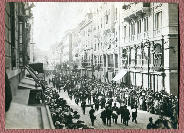 Felice Venezian, avvocato, esponente di rilievo della massoneria, svolge il ruolo di capo carismatico indiscusso del movimento liberalnazionale per un ventennio, riuscendo a tenere unite le diverse anime della comunita' italiana sotto una guida conservatrice ed intransigente, capace pero' di tenere a freno gli esponenti piu' radicali. La sua prematura scomparsa lascia un pesante vuoto nel movimento. (Cfr. Trieste: una storia per immagini 1900-1918, p. 48)