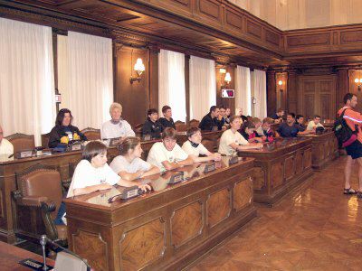L'assessore Renzo Codarin ed il consigliere Piero Camber con i ragazzi dell'iniziativa Gioventù in Movimento assieme al presidente del Club Alpino Italiano Gabriele Bianchi e al presidente del Club de l'Arc Alpin Roberto de Martin ed ai rappresentanti dell'Unione Internazionale delle Associazioni Alpinistiche in occasione della manifestazione conclusiva legata all'anno internazionale della montagna.