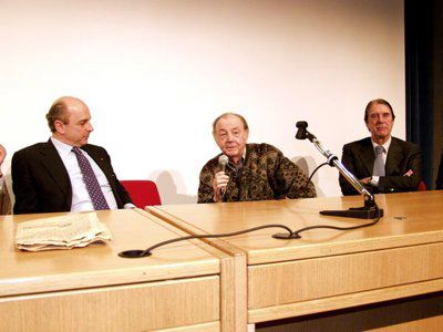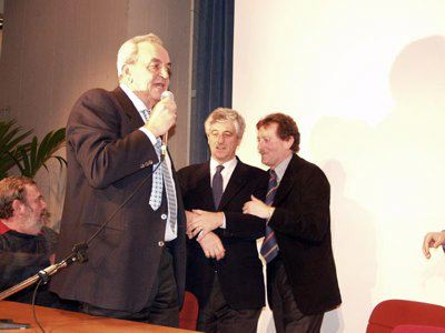 Presenti sul palco nell'auditorium del Museo Revoltella il sindaco Dipiazza, i figli Bruno e Tito, l'onorevole Gianni Rivera, l'allenatore Cesare Maldini, il giornalista Bruno Pizzul, il presidente della Camera di Commercio Paoletti