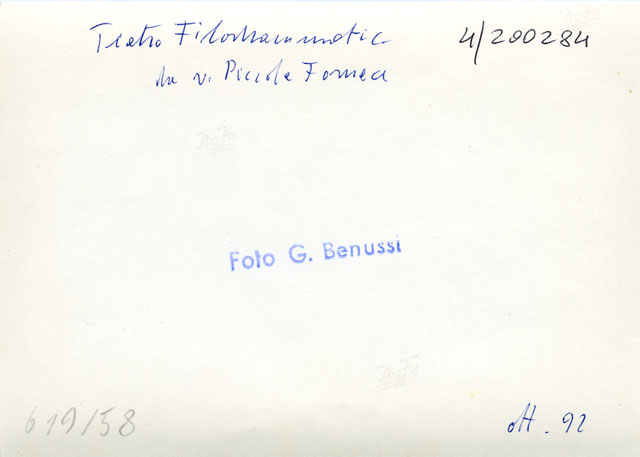 I resti del Teatro Filodrammatico distrutto alla fine degli anni Ottanta da un rovinoso incendio. L'edificio, costruito a seguito di un incendio che aveva devastato alcune catapecchie ai piedi del Colle di San Giusto, liberando così l'area, venne inaugurato nel 1829.Fu tra i più importanti teatri della Trieste asburgica, prima di venire convertito a cinema tra gli anni Venti e Trenta.