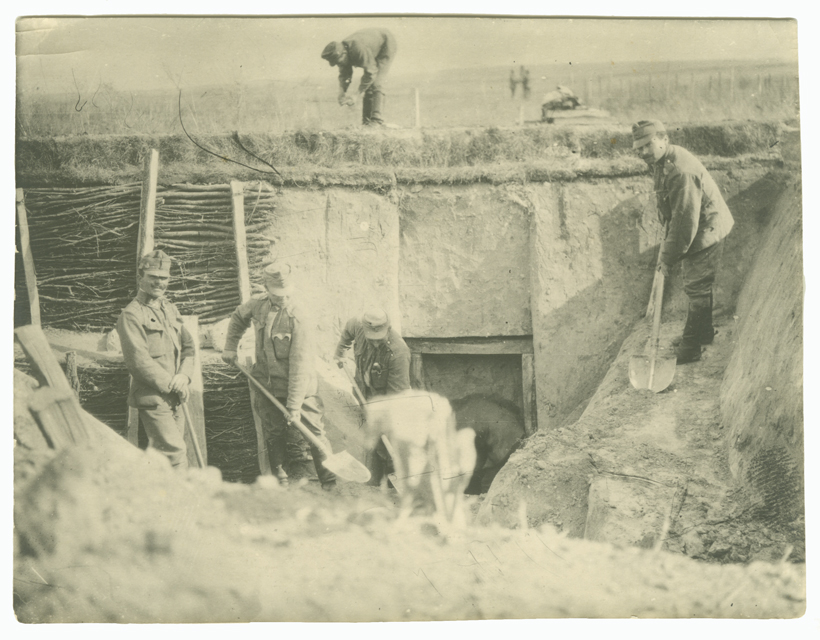 Lo squadrone tecnico del 12. Reggimento Ulani costruisce fortificazioni con caverne a Myshiv (Myszów), in Volinia