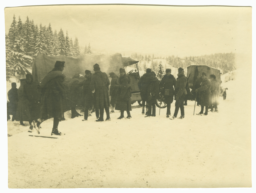 Lo squadrone tecnico del 12. Reggimento Ulani, con il tenente Pitlik, tirano fuori un camion delle truppe bavaresi da una fossa.