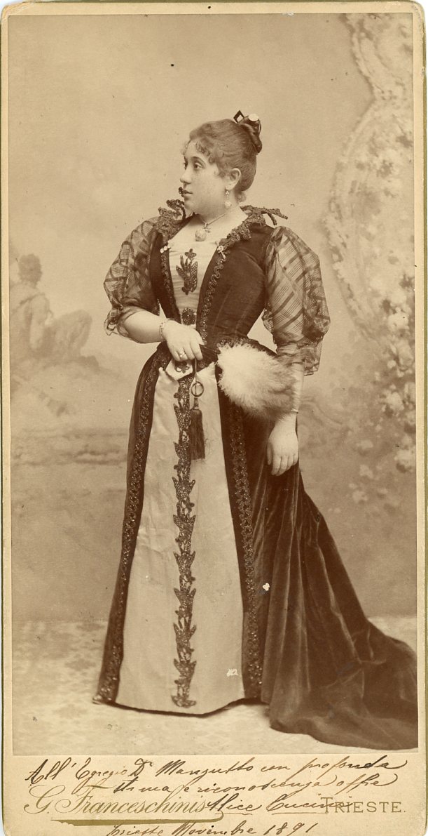 In costume. Al Politeama Rossetti di Trieste cantò nel 1891 "Ruy Blas", nel 1900 "Sansone e Dalila". Al Teatro Fenice nel 1894 "La forza del destino". Al teatro Verdi nel 1891 e nel 1894 in concerti diretti da Giulio Heller