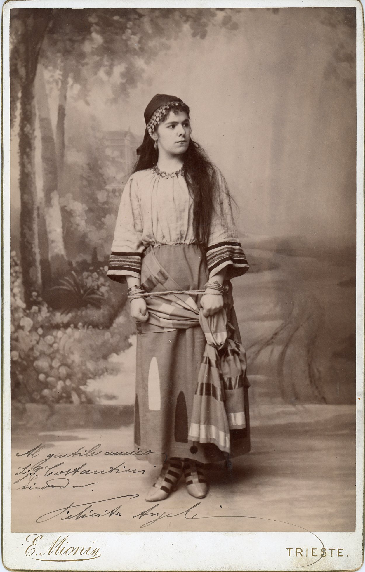 Contralto cividalese; in costume nel ruolo di Azucena al Politeama Rossetti di Trieste nel 1890 ne "Il trovatore"