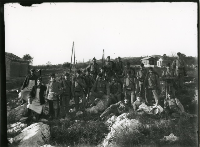 Gruppo di soldati austriaci ad Aurisina durante la prima guerra mondiale.