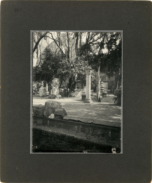 Ripiano superiore dell'Orto Lapidario del Museo di Storia ed Arte di Trieste con la cattedrale di San Giusto sullo sfondo.