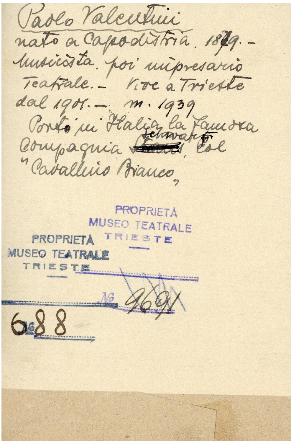 Proprietà Ente pubblico territoriale; Civico museo teatrale C. Schmidl