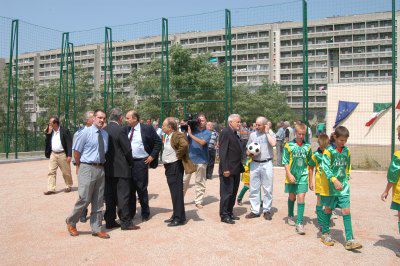 Il sindaco Roberto Dipiazza taglia il nastro alla presenza dell'assessore Giorgio Rossi, di Stelio Borri Presidente del Comitato Provinciale di Trieste del CONI, dei consiglieri comunali Franco Bandelli e Piero Camber e del consigliere provinciale Ettore Rosato