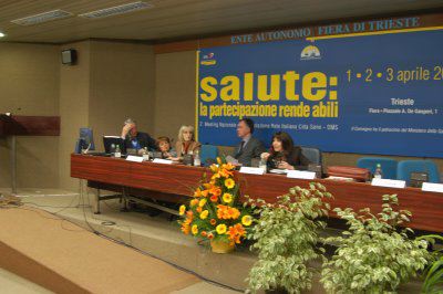 Il tavolo della presidenza del meeting. l'assessore comunale Claudia D'Ambrosio , Gianna Zamaro Coordinatrice tecnico-scientifica del Comune di Udine e Giuseppe Cosenza direttore Settore Salute e Qualità della Vita Comune di Bologna.