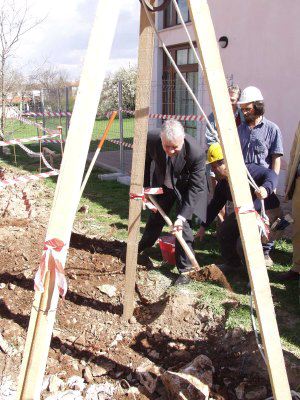 Silvana Moro consigliere posa la pietra, assistono Giorgio Rossi e Angela Brandi assessori, Piero Camber e Michele Lobianco consiglieri della IV commissione consigliare