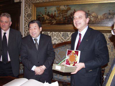 Il sindaco Roberto Dipiazza sindaco e l'assessore comunale Giorgio Rossi ed il presidente del Consiglio comunale Bruno Sulli incontrano l'ambasciatore cinese Chen Wen Dong, nel salotto azzurro del Municipio.