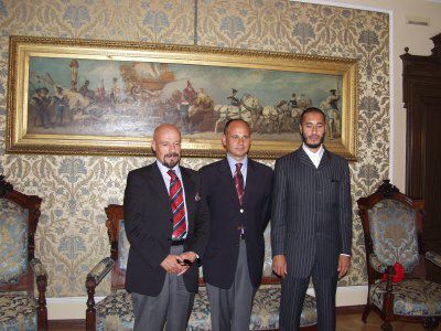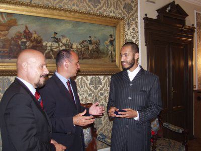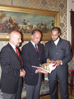 Il vicesindaco Renzo Codarin, Al Saadi Gheddafi jr ed Amilcare Berti presidente dell'US Triestina