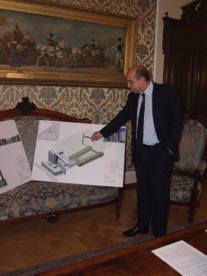 Il sindaco di Trieste Roberto Dipiazza con l'assessore comunale Giorgio Rossi durante la presentazione del progetto nel salotto azzurro del Municipio