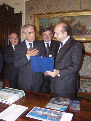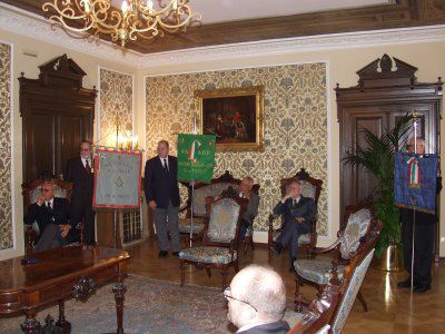 Il sindaco di Trieste con i rappresentanti della Massoneria triestina nel salotto azzurro del Municipio.