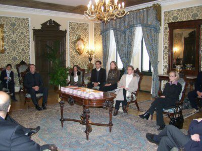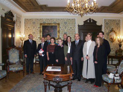 Il sindaco di Trieste Roberto Dipiazza con i rappresentanti del MIB nel salotto azzurro del Municipio.