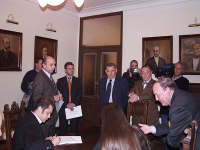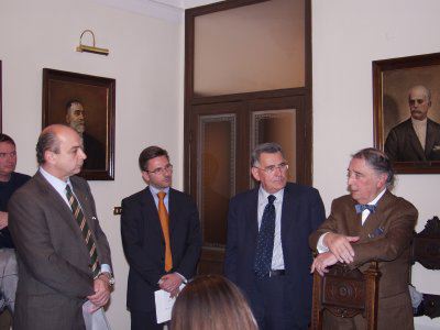 Il sindaco Roberto Dipiazza con l'assessore comunale Franco Frezza durante la conferenza stampa in Municipio. Presenti anche i consiglieri Salvatore Porro, Paolo Rovis ed Andrea Vatta