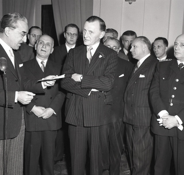 Con una solenne cerimonia in Prefettura, il maggior generale inglese sir Terence Airey si congeda dalle autorità politiche cittadine (da: Trieste 1900-1999: cent'anni di storia, v. 6, p. 184)