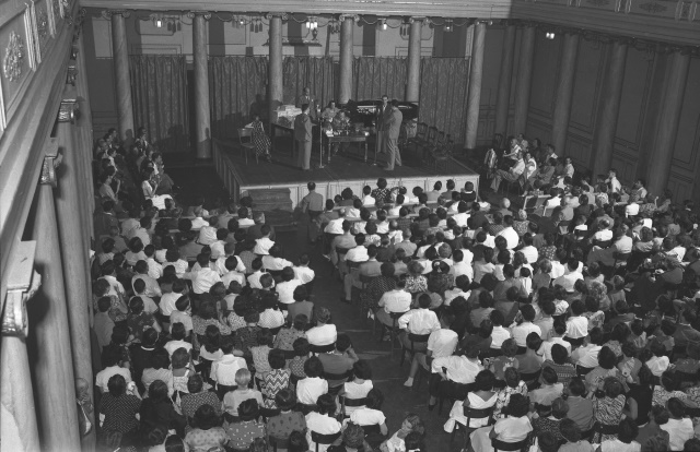 Dalla sala del Ridotto del teatro Verdi va in onda Botta e risposta, il programma radiofonico a quiz condotto da Silvio Gigli, con grande partecipazione di pubblico.