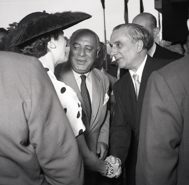 Inaugurazione della 4. Fiera campionaria internazionale di Trieste. A presenziare la cerimonia il ministro dell'industria e commercio Pietro Campilli, il generale Winterton, il sindaco Bartoli e il presidente dell'Ente Sospisio