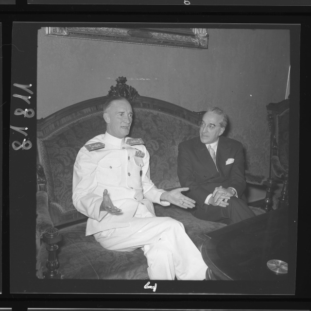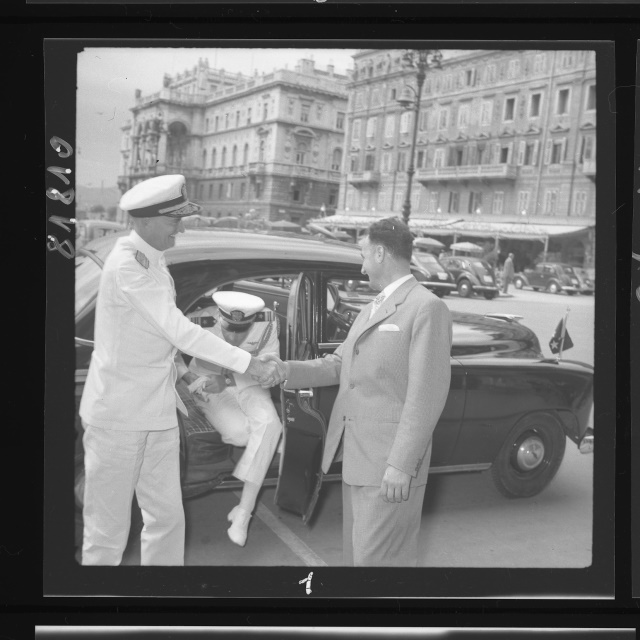 Il vice Ammiraglio John Cassidy, comandante la 6. Flotta incrociatori viene ricevuto in municipio dal sindaco Bartoli. L'ammiraglio è in porto con la nave USS Salem (dal Giornale di Trieste, 09.06.1953)