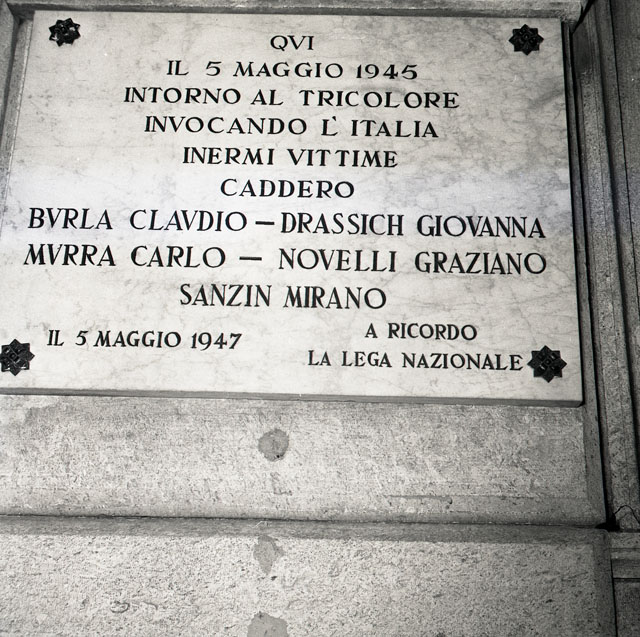 Targa commemorativa ai cinque caduti durante le proteste anti jugoslave del 5 maggio 1945