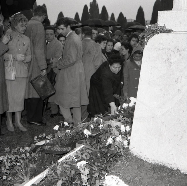 Monumento a ricordo delle persone cadute sotto il fuoco della polizia civile durante le giornate del 5 e 6 novembre 1953, opera dello scultore Marcello Mascherini. (da: Trieste 1900-1999. Cent'anni di storia, v. 6, p. 299)