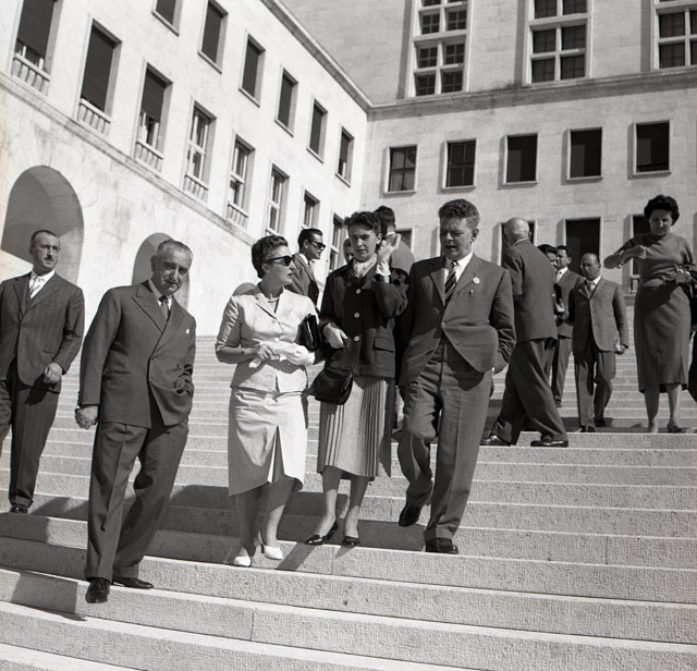 Congresso sulla laringologia nell'Aula magna dell'Università degli Studi, visita dei congressisti al museo Revoltella, ricevimento e ballo all'hotel Savoia Excelsior, visita alla raffineria Aquila.