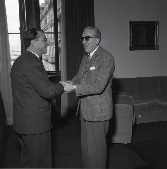 Ugo La Malfa, uno dei maggiori esponenti del Partito Repubblicano italiano, arriva a Trieste in qualità di rappresentante dell'Italia nella comunità europea del carbone e dell'acciaio.