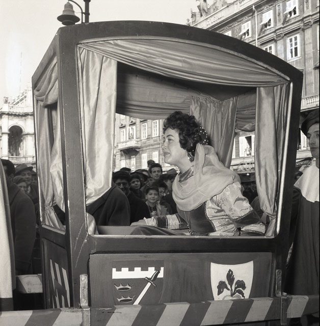 Grande sfilata di Carnevale in costumi medievali con suonatori e sbandieratori e successiva visita in Comune al sindaco Bartoli. Nella Tavagnacco, vestita da madamigella della Signoria di Gorizia, porta un invito a un convegno previsto per la domenica successiva a Gorizia. (Notizie tratte da Il Piccolo, 14.02.1955).