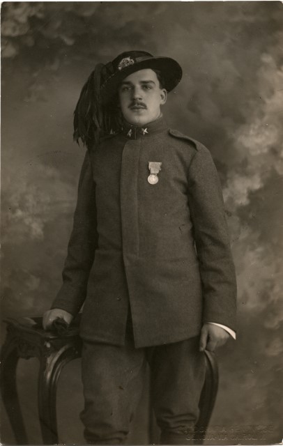 Franco Cecchini, nato a Trieste nel 1894, volontario irredento 6° Rgt. Bersaglieri. Nome da assumersi dall'arruolato: Rovighi Dante di Alberto Via Mazzini 45