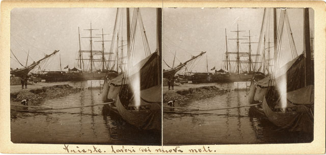 Le descrizioni del porto appaiono nelle vedute che, grazie alla tridimensionalità, consentono di percepire la profondità del paesaggio. Le fotografie e i visori hanno bassi costi e dimensioni contenute. Anche a Trieste la moda delle stereoscopiche ha un grande successo e nei giornali locali le pubblicità reiterate degli studi fotografici invitano all’acquisto delle immagini, già a partire dagli anni Cinquanta dell’Ottocento.
