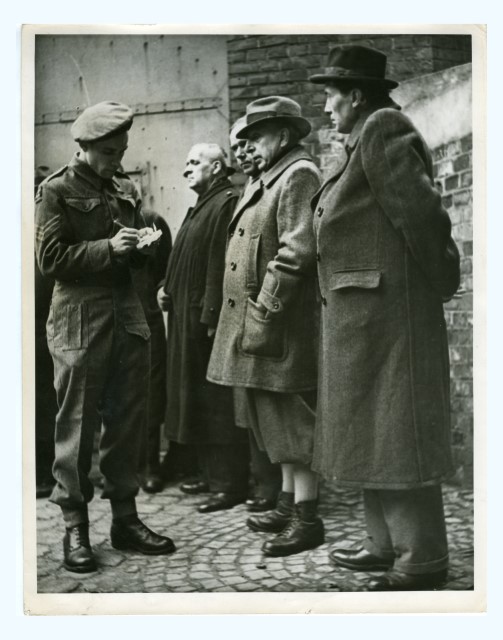 Soldato inglese della Field Security Police interroga uno degli industriali arrestati a Dortmund, nella notte tra il 30 novembre e l'1 dicembre 1945