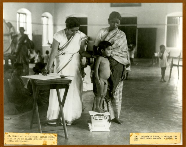 Esame dei figli degli operai nella clinica di un grande cotonificio nell'India meridionale