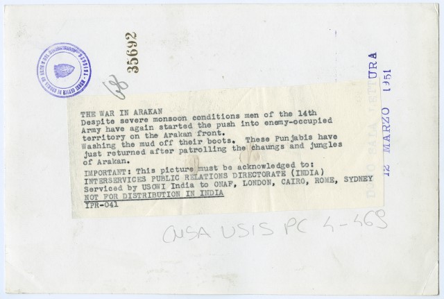 Soldati indiani lavano i loro stivali dopo esser stati nella jungla di Arakan.