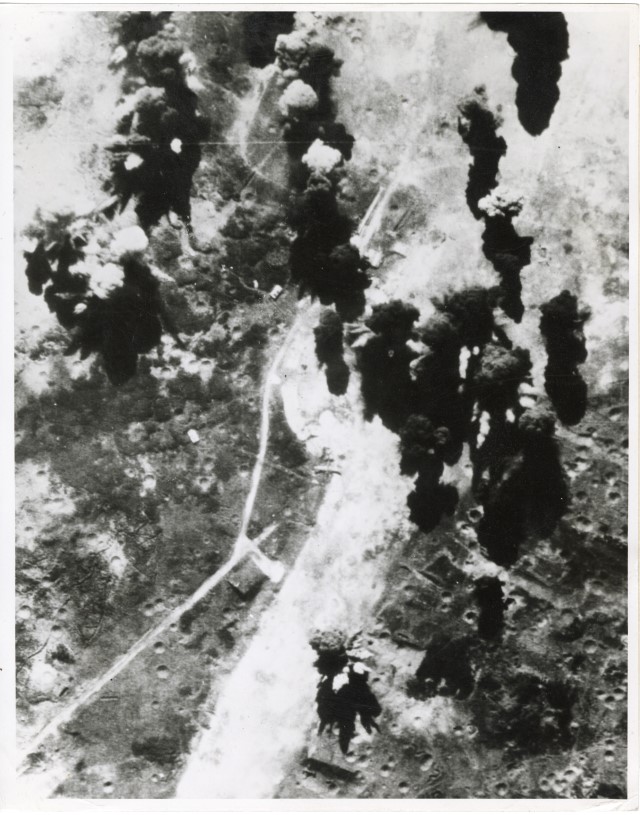 Base giapponese a Iwo Jima colpita dagli attacchi americani.